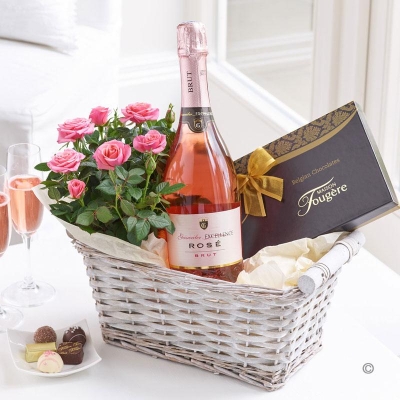 This gift includes the very best of everything. They’ll be able to sit back and savour a chilled glass of sparkling rosé and choose from the extravagant luxury chocolate selection for an extra special treat. The pretty flowering rose plant will be a lasting memory of this altogether fabulous gift.