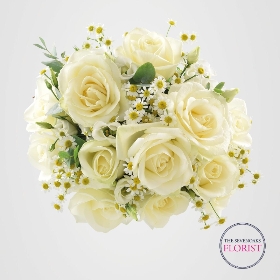 This simple, yet stylish bouquet speaks for itself. Combining cream Avalanche roses, white lysianthus and tanancetum with eucalyptus, its style is perfect.